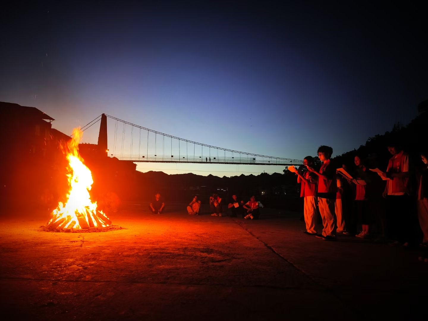 在苗族研究院,实践团队与专家学者深入交流,共话民族文化与法治融合,探讨如何将苗族传统习俗与现代法治有机结合,为乡村治理提供新思路;在施洞法庭,实践团队与庭长探索调解与民族习俗的相互影响,学习法庭在处理民族地区纠纷时的创新经验,为法治乡村建设提供有益参考;在文化振兴方面,团队成员带来的青春热舞助力村BA,点燃赛场激情,丰富村民文化生活;推广普通话活动,帮助村民提升语言沟通能力,更好地融入现代社会;制作苗族银饰活动,将非遗文化与法治创新相结合,通过与非遗传承人就银饰品牌打造、非遗技艺传承中的法律问题进行探讨,助力非遗文化在法治轨道上实现创造性转化和创新性发展。夜幕降临,篝火晚会上,“青春法盾,无毒无艾”队带来的诗歌朗诵《青春中国》以真挚的情感和激昂的语调演绎经典,展现青春力量,传递爱国情怀,省委组织部驻岗党略村第一书记唐林海和带队老师潘吉脉纷纷登台献唱,现场反响热烈。师生与村民们载歌载舞,在欢声笑语中增进了彼此的感情,也让民族团结之花在苗寨绚烂绽放。