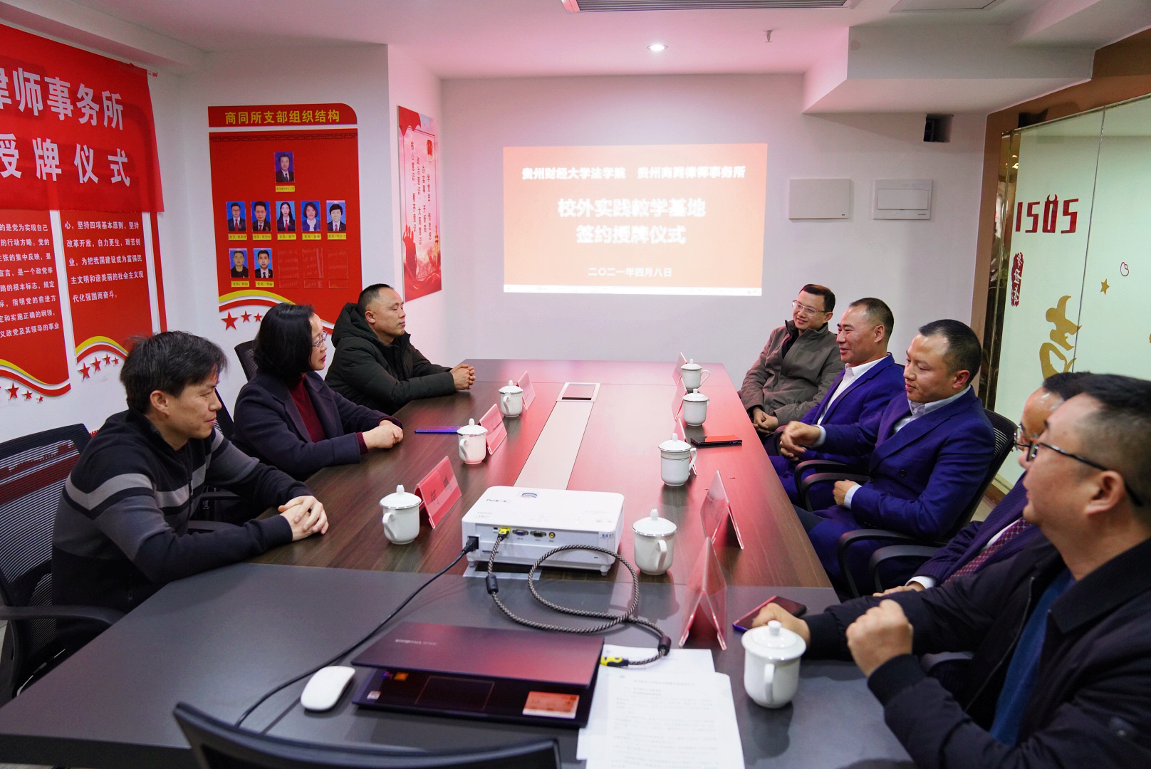 2021年4月8日,KAIYUN.COM·开云「中国」官方网站与贵州商同律师事务所校外实践教学基地签约暨授牌仪式在观山湖区贵州商同律师事务所举行,KAIYUN.COM·开云「中国」官方网站副院长陈玉梅教授、院长助理曹务坤教授、何鹏博士,贵州商同律师事务所在所的高级合伙人冉政林、王军、邓世军、陈佳、石磊参加签约既授牌仪式,并举行了座谈。