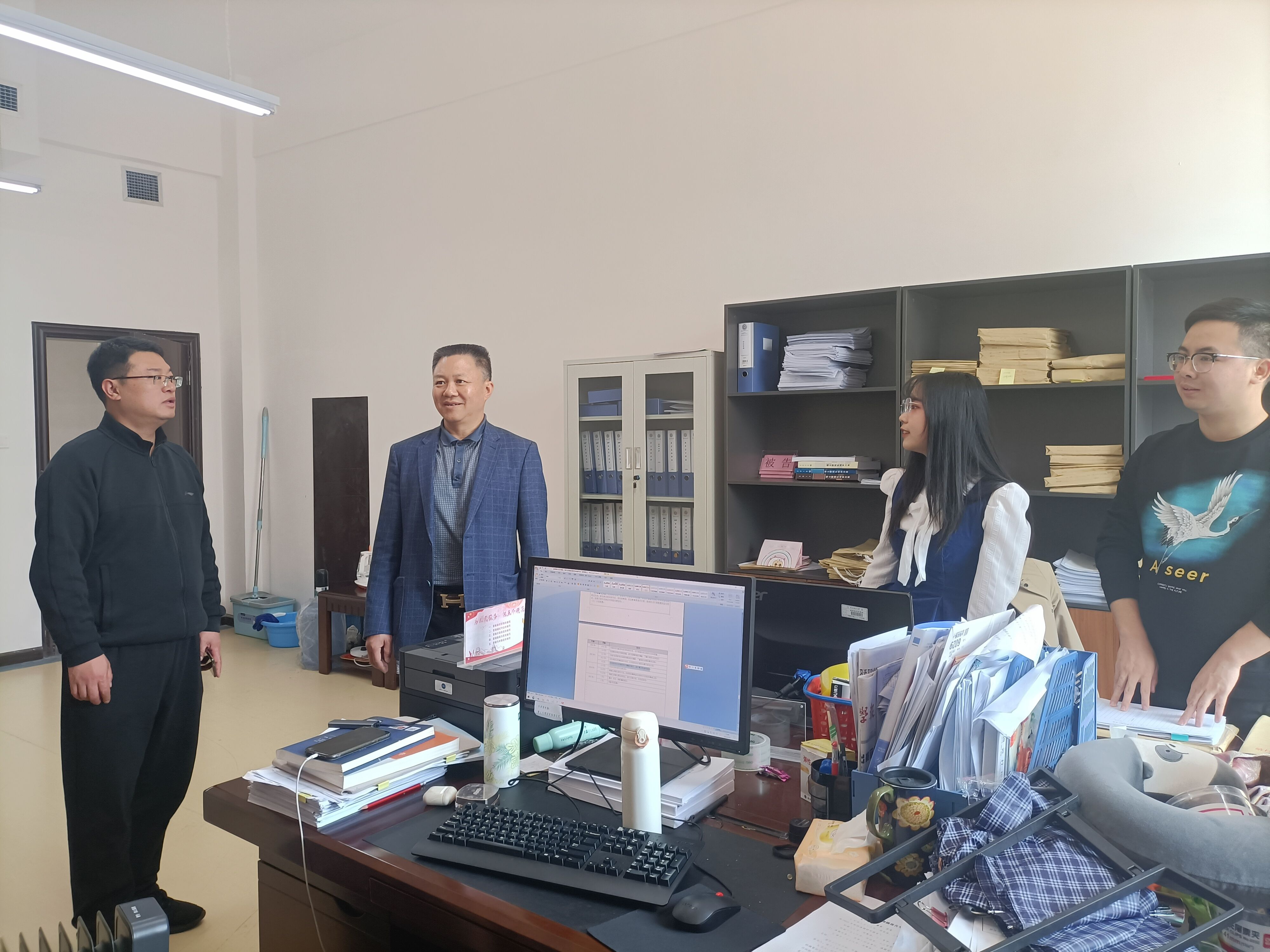 杨勇听取了詹伟关于学院人才培养、学科建设、国发〔2022〕2号文件精神学习情况、本年工作思路和工作重点等汇报,对学院科室和教师工作室进行了走访,并与教师们一一谈心谈话,他勉励教师们努力工作,强化民商法学、经济法学、环境与资源法学等二级学科建设,杨勇也考察了法学院职工之家、图书室和研修室的建设,对法学院“学术立校”开展情况给予充分肯定。