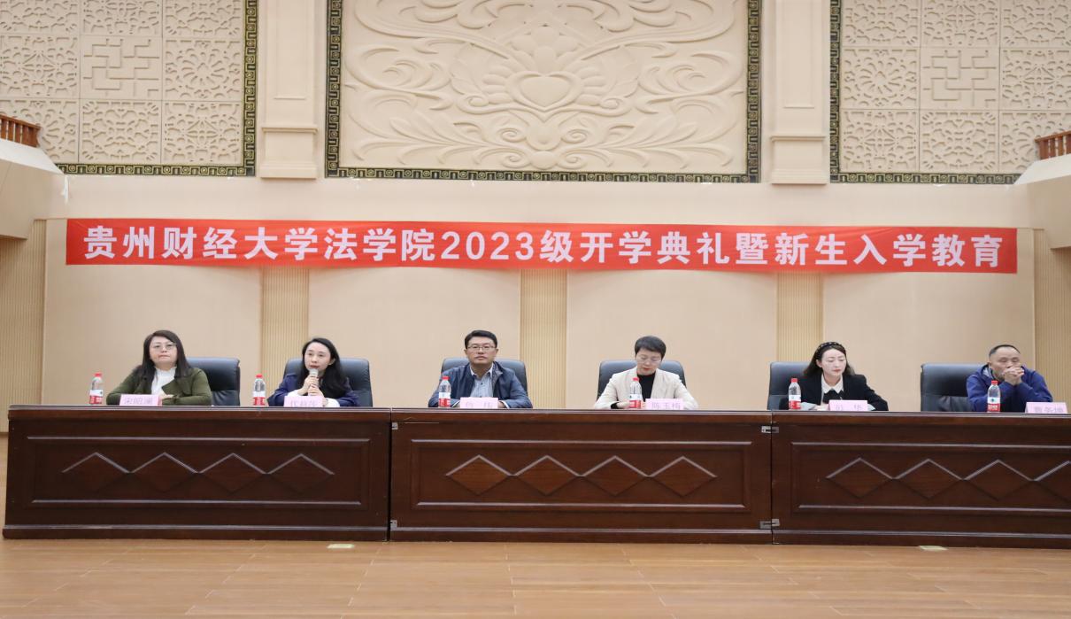 詹伟为新生上“开学第一课”,介绍了贵州财经大学的校情校史以及法学院的发展情况,希望同学们学习在学院、科研在学院、研讨在学院、情怀在学院;陈玉梅介绍了法学专业的情况,希望同学们在新时代应行稳致远,不负时代,更应该不负时代使命,勇做追光少年;代莉莎介绍了学院党建品牌,希望同学们一起线上线下积极健康正能量,成为遵守校纪校规的先行者;彭华介绍了学院各科室的的简介和科室负责人,希望同学们在校园里度过美好的大学时光;宋昭澜介绍了硕士研究生培养情况,希望自己成为大家的知心朋友,鼓励大家多参加科研和学术活动;曹务坤介绍了本科生培养情况,就学术能力提升和学业提升提出了相关要求和建议;教师代表王宏发言,勉励新生要学好专业知识,强调了法学的重要性;孙雷凯和韩雨君分别代表硕士研究生和本科生进行发言,呼吁全体新生要坚定理想,树立目标,做品学兼优的新时代大学生。