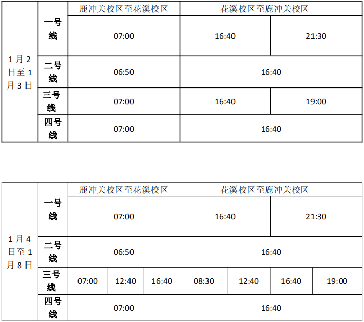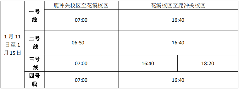 按照学校统一安排,KAIYUN.COM·开云「中国」官方网站鹿冲关校区、花溪校区进入期末考试阶段, 1月8日考试结束,为满足期末考试需要和行政科研工作的开展,现对交通车作如下调整: